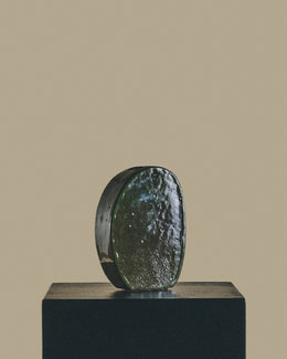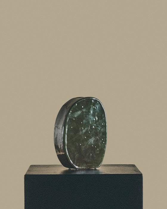 A handmade ceramic bud vase by New York City artist Shane Gabier, whose influences include modernist design, 70s psychedelia, and Brutalist architecture.