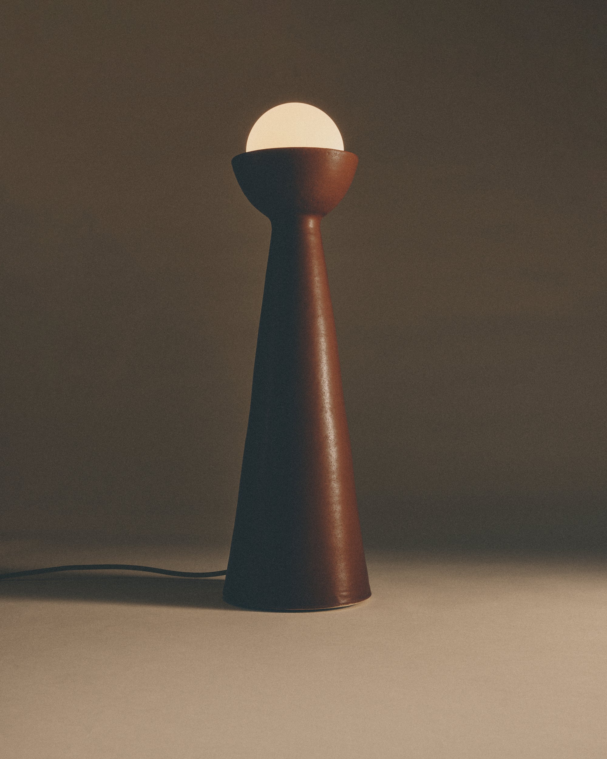 A sculptural lamp inspired by one of the earliest forms of lighting, the Roman torch.